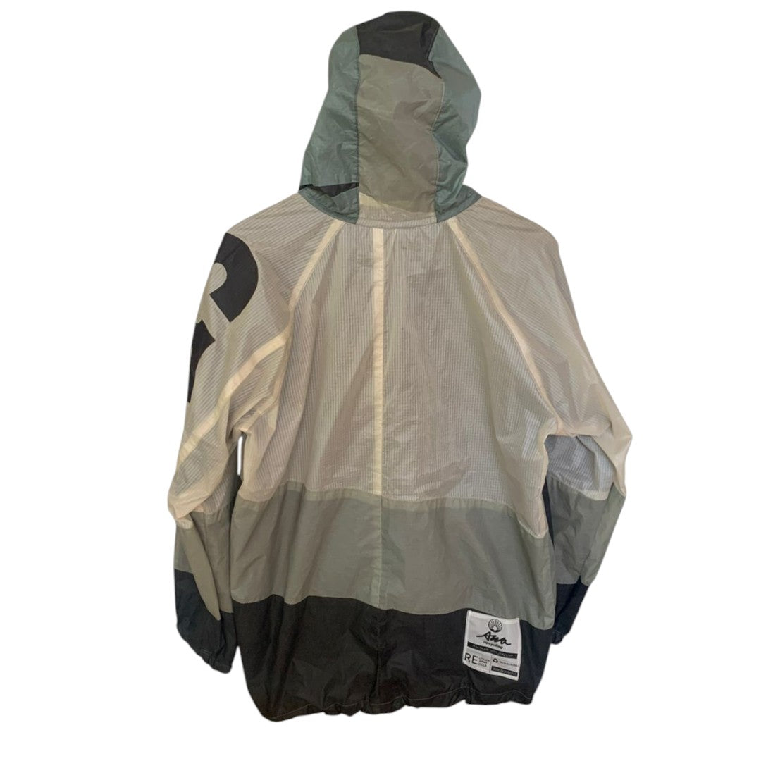 Chaqueta cortaviento sostenible fabricada con materiales de upcycling de parapentes, con cierre marca YKK y dos bolsillos exteriores y uno interior. Corte amplio para mayor comodidad.